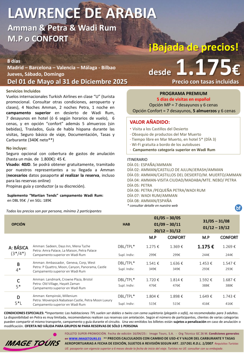 Jordania PREMIUM. Lawrence de Arabia 8d: Amman, Petra y Wadi Rum, dsde 1.175€ hasta Diciembre 2025